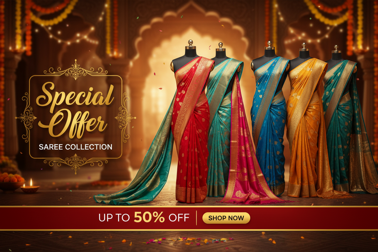 Limited time offers on premium silk and cotton sarees. Don't miss out on exclusive deals!